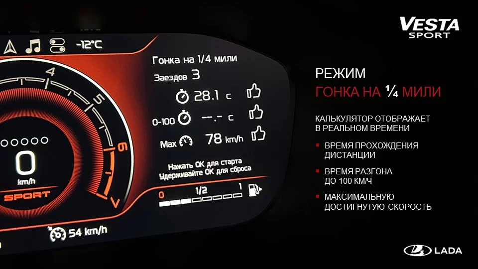 Новое поколение Lada Vesta Sport получило обновленную приборную панель. В новом щитке появился режим Sport, которого нет в обычных автомобилях, а также есть дополнительные вкладки, в которых отображается замер разгона до 100 километров в час, режим гонки на четверть мили и другие параметры. На заводе рассказали в деталях про новую панель приборов, сайт Лада.Онлайн ознакомился с этой презентацией.