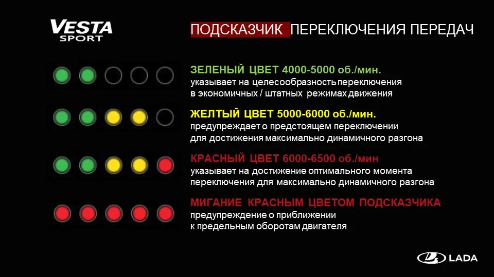 ЖЕЛТЫЙ ЦВЕТ 5000-6000 об./мин. Предупреждаете предстоящем переключении для достижения максимально динамичного разгона