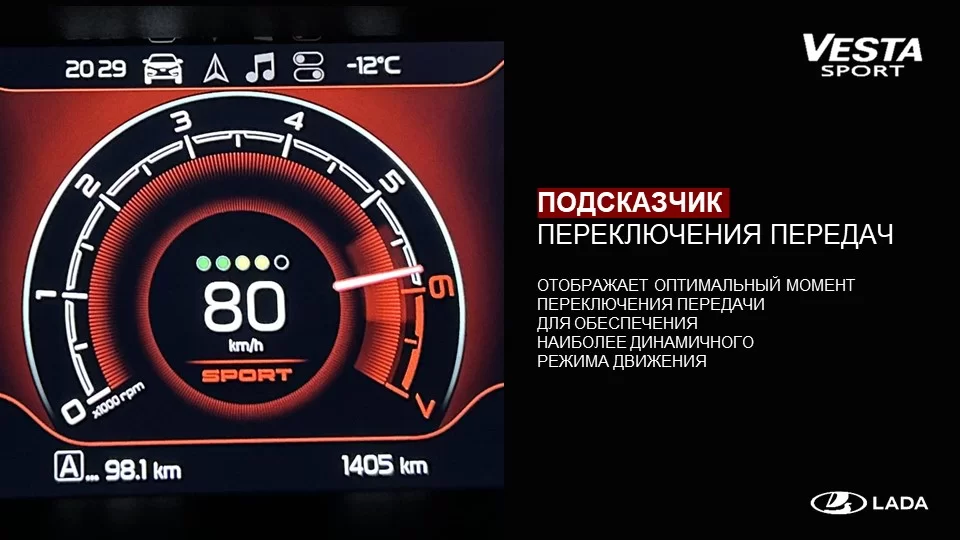 Отображает оптимальный момент переключения передачи для обеспечения наиболее динамичного режима движения.