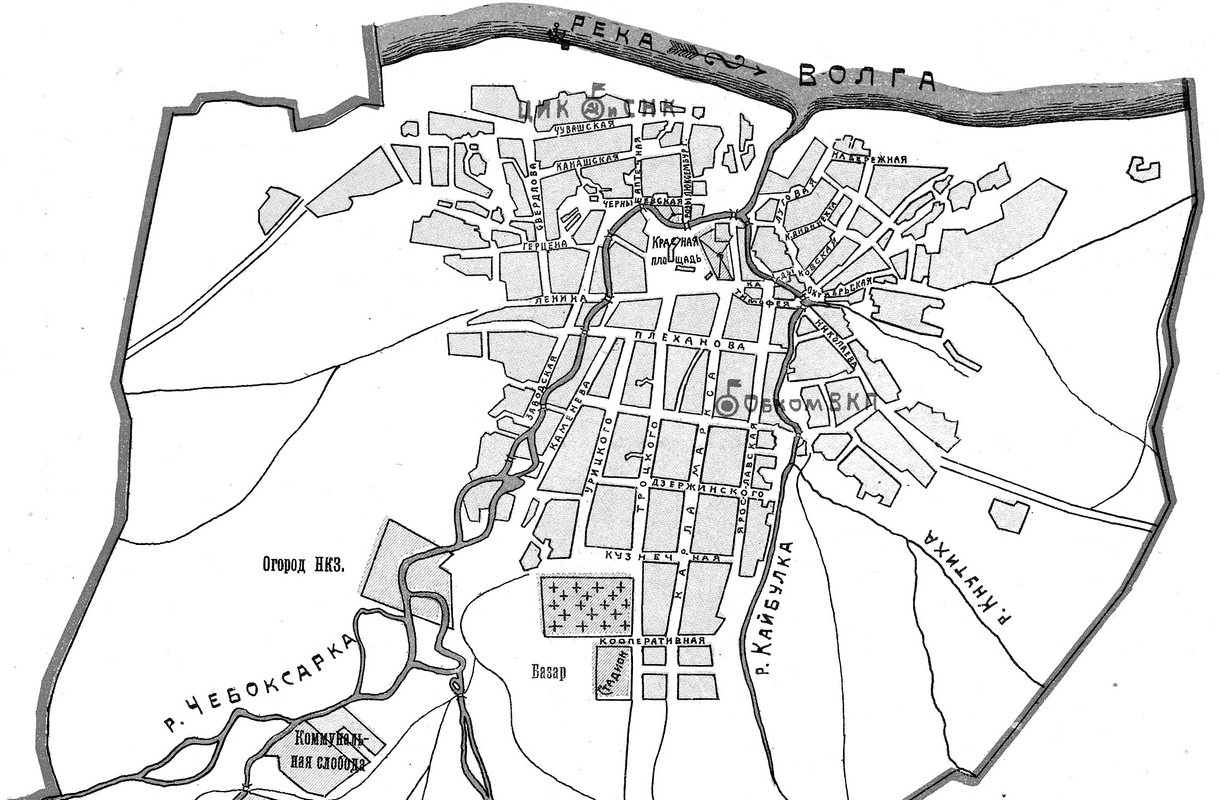 Улицы на карте Чебоксар 1926 года.