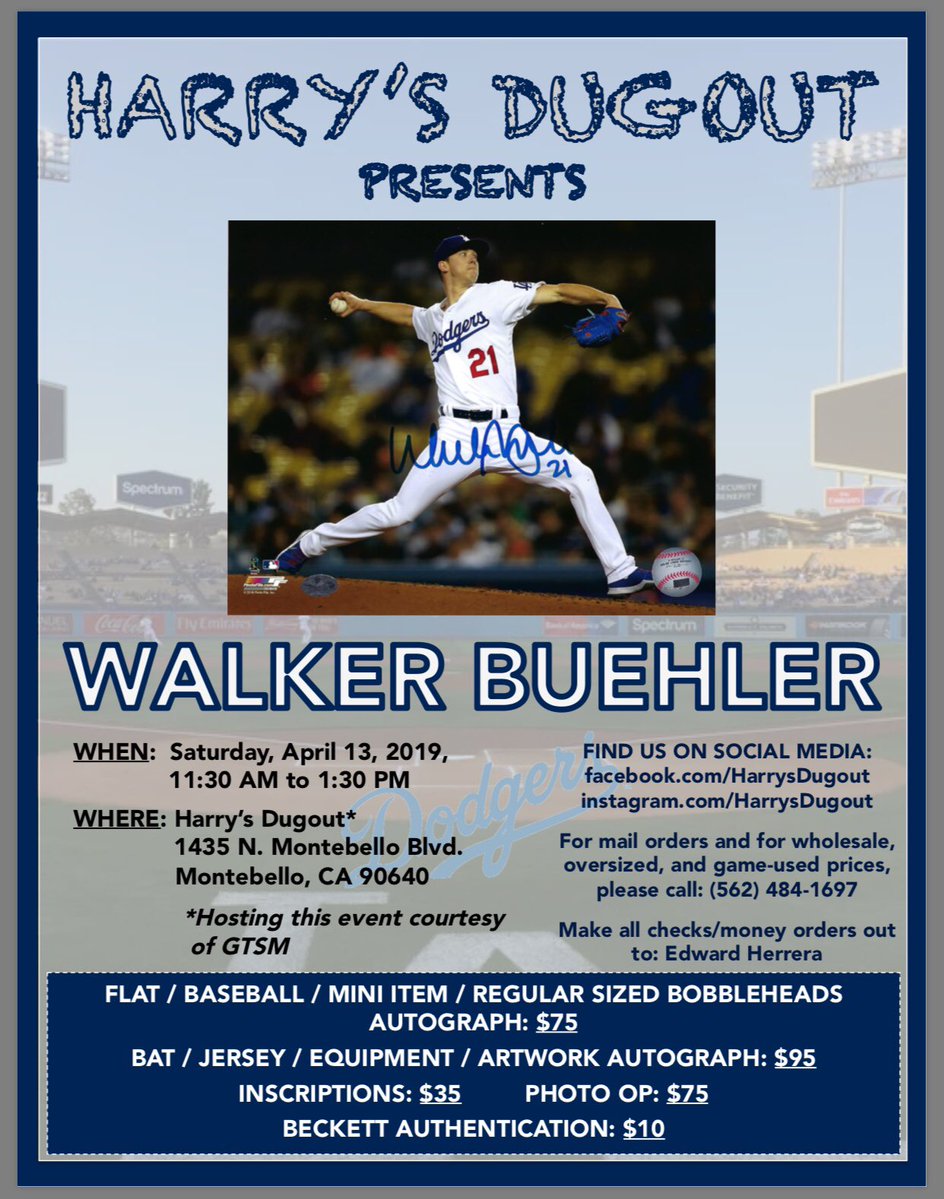 Walker Buehler and Angels great Doug DeCinces are scheduled to sign autographs for fans this coming Saturday, April 13th at Harry's Dugout in Montebello. Unfortunately, autograph tickets for Walker Buehler is already SOLD OUT. Go here or here for information.