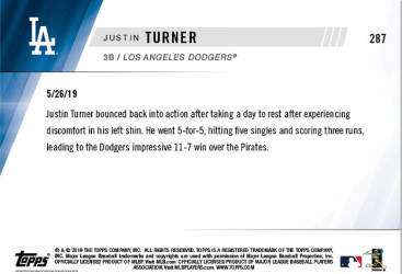 2019 Topps Now - #287 - Justin Turner's Five Hit Sunday
