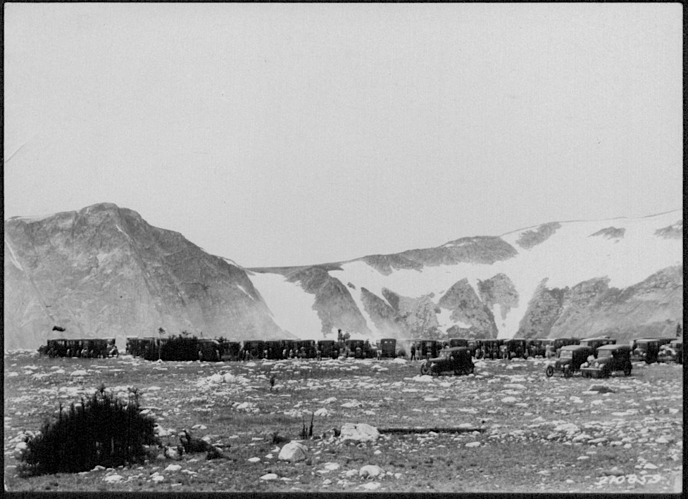 Cars on Libby Flats at the base of the Snowy Range, southeast Wyoming; July 4, 1926; courtesy American Heritage Center, University of Wyoming.