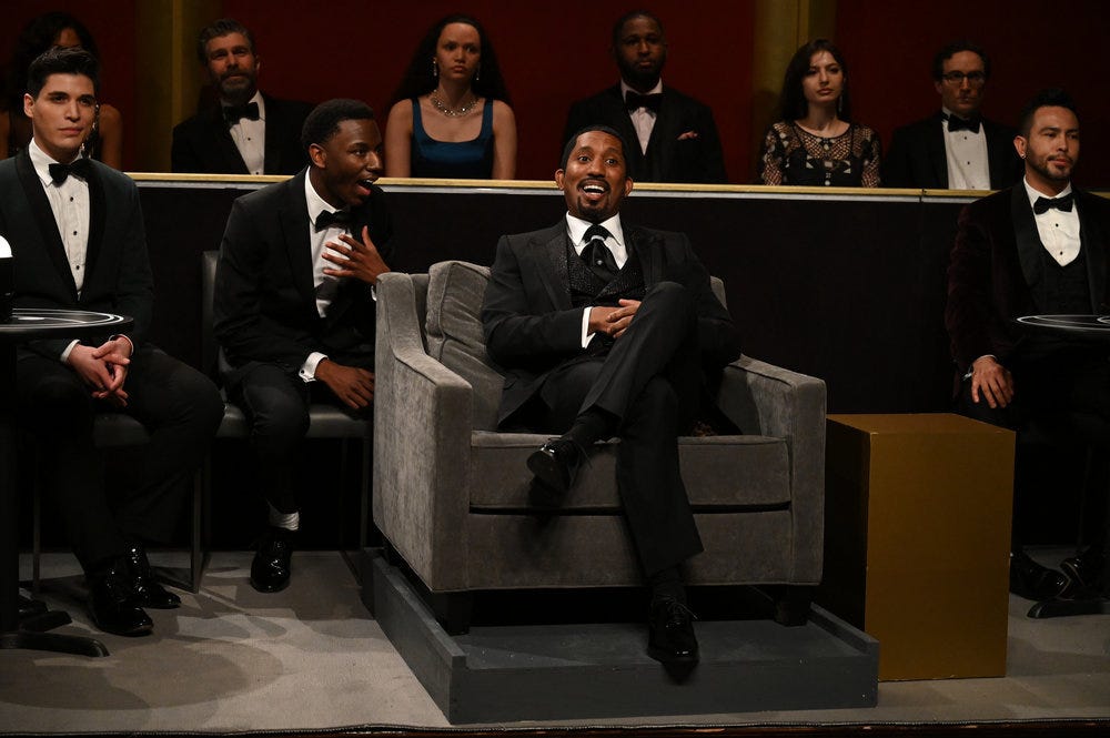 Of course, "SNL" had to talk about The Slap. Comedian Jerrod Carmichael and "pushin P" rapper Gunna served as host and musical guest April 2, 2022.