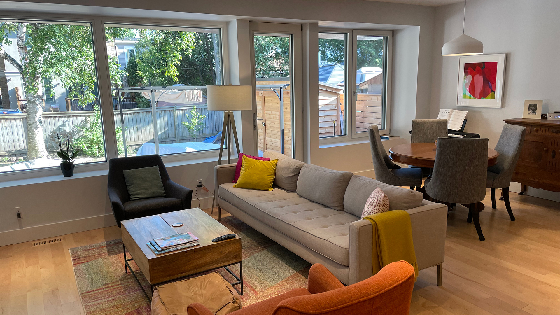 Located in Toronto’s Danforth neighbourhood, the Sammon Passive House home has the advantages of a newly-constructed Passive House, including increased comfort, resilience, durability, and energy savings of almost 75-90 per cent of typical homes (Passipedia), but it is a deep retrofit of an existing 80 year old building.