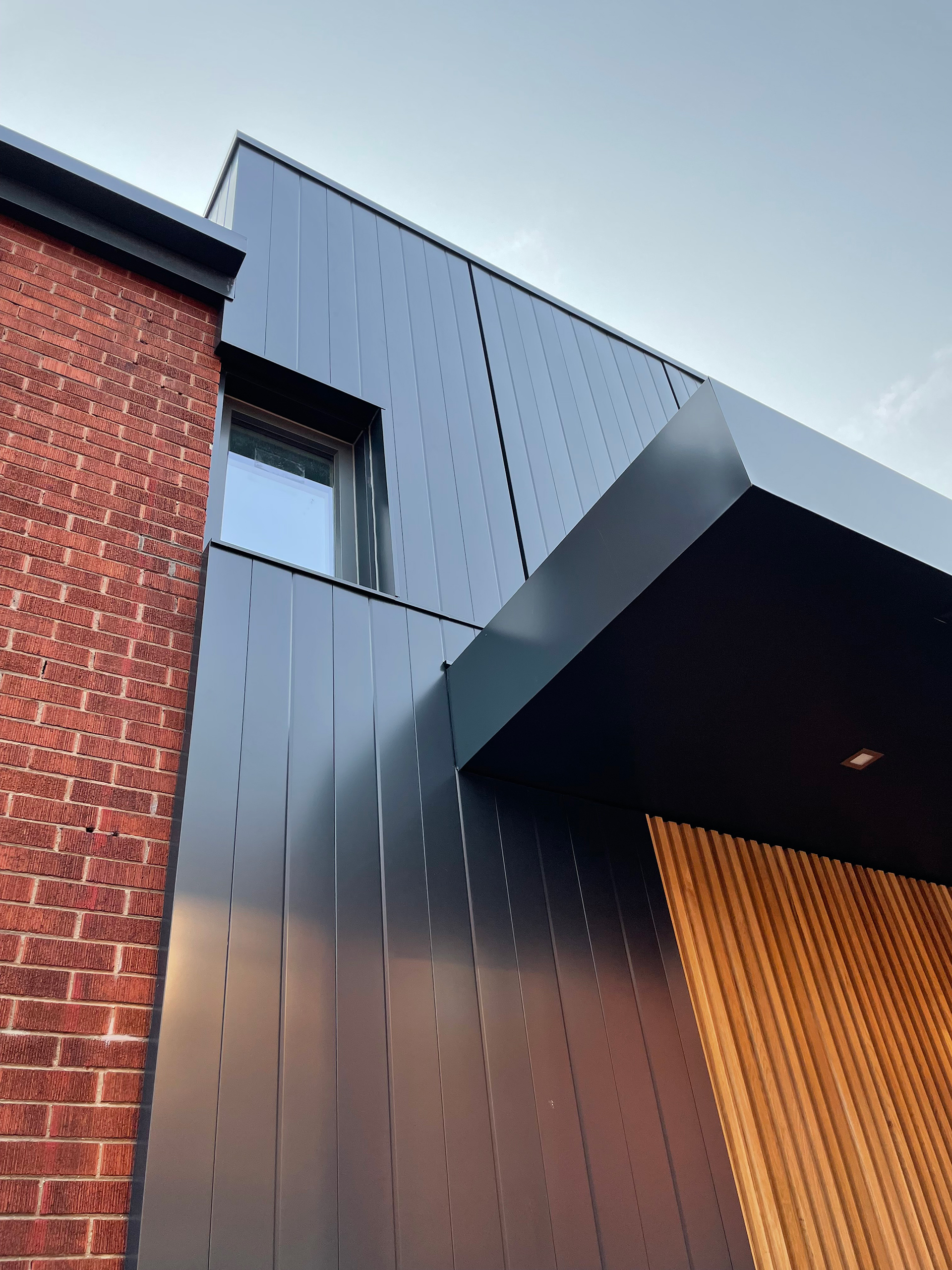Re-using the existing home meant we were able to substantially reduce the embodied carbon emissions for the project: for instance over 80 per cent of the brick walls of the home, and much of the concrete and wood framing were retained.
