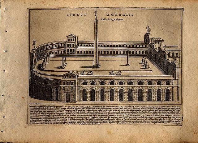 Piazza Navona was once a massive stadium but now a fascinating feature of underground Rome. Photo from Wikicommons