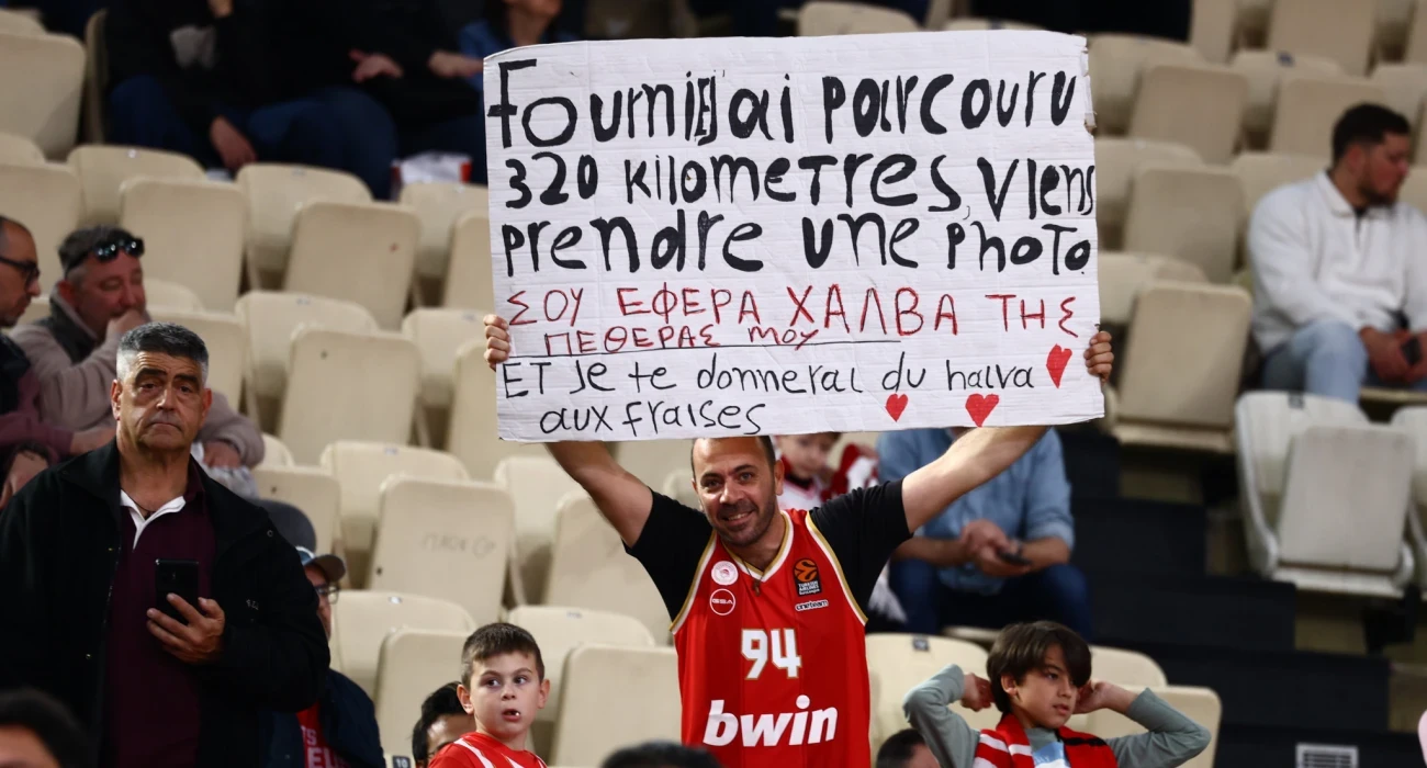 Συγκεκριμένα, ταξίδεψε πολλά χιλιόμετρα για να τον «κεράσει», αποκαλύπτοντάς το έμμεσα μέσα από ένα ευρηματικό πανό πριν από την αναμέτρηση με τη Μύκονο στο ΣΕΦ (5/4, 13:00).