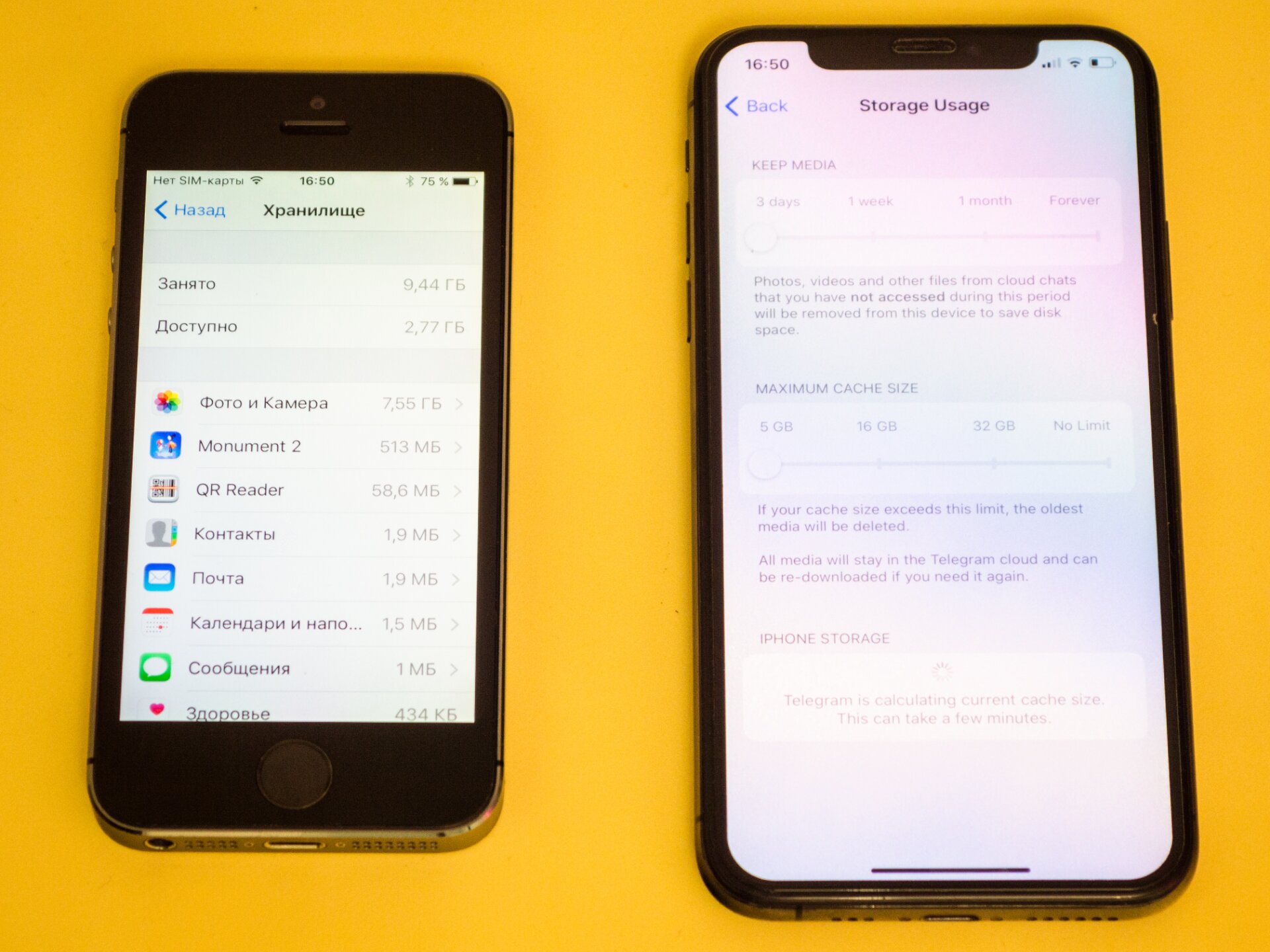 Активные пользователи мессенджеров знают, что условный Telegram постоянно кеширует медиафайлы (то есть сохраняет их на устройстве в своей скрытой папке для дальнейшего просмотра без интернета) — если человек активно использует соцсеть, то за считанные дни память может забиться на несколько гигабайт. Чтобы хранилище не заполнилось в неподходящий момент, лучше сразу лимитировать его использование — это делается в настройках самих приложений (но не все предоставляют такую функцию).