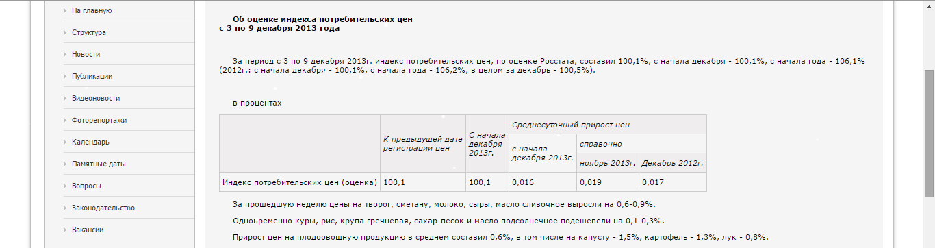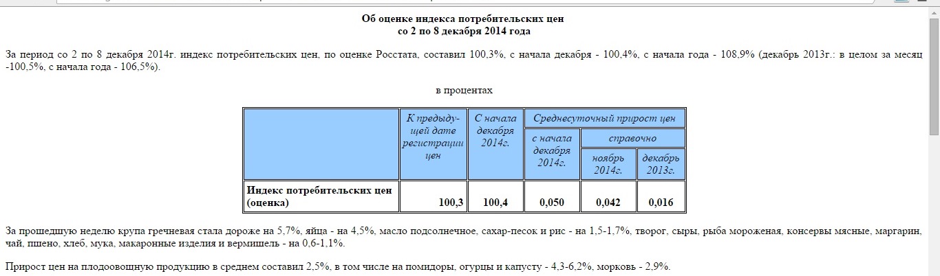 Сегодня на Яндексе моё внимание привлекла интересная новость, которая касалась инфляции за первую неделю декабря 2015 года и выглядела она