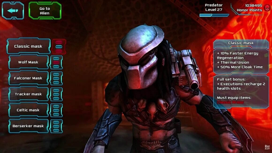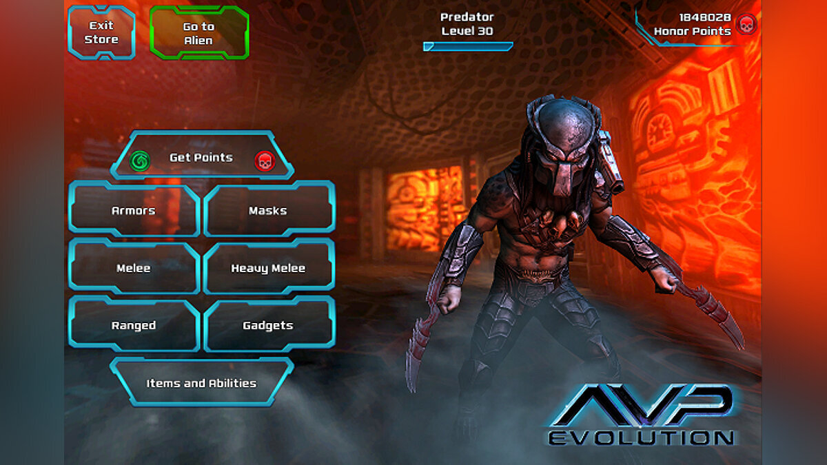 - в игре можно прокачивать и кастомизировать персонажа за игровые очки, у хищника даже есть трофейный зал с черепами. При прохождении каждого уровня дается какая-нибудь плюшка для прокачки, благодаря чему персонаж со временем становится своим, родным.