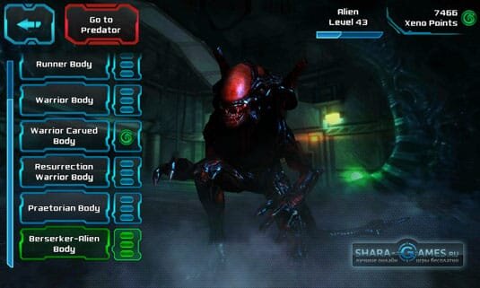 - игра радует различными механиками, тут вам и разные виды добивания и огромный спектр оружия. Например за хищника, вы можете применить копье или скрыться и стрелять из плазмо-пушки, использовать маскировку и пройти незаметно или же пойти в бой устроив резню. За чужого же дают сыграть почти за все этапы развития ксеноморфа и почти за все виды, хотели поиграть за фейсхаггера? Держите! За грудолома? Получайте! За королеву? Пожалуйста! При этом в игре не чувствуется излишеств, все что вам дается в персонаже абсолютно применимо, светит ярко свет в коридоре? Разбейте его хвостом! Хоть игра и коридорного типа, однако это не ощущается. Во время загрузок есть вставки с описанием сюжета. В игре также присутствует арена, где можно зарабатывать игровые очки, для прокачки персонажа, кстати о прокачке.