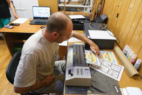 В начале осени в инклюзивном центре установили типографское оборудование. Теперь здесь печатают книги, пособия и раскраски. Трудятся 5 человек. Денис Зезиков, к примеру, освоился за неделю. Мог бы и быстрее, но мешал сильный тремор.