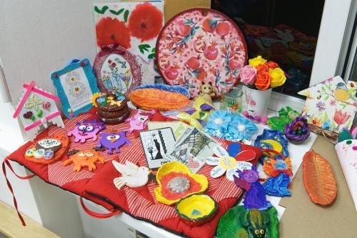 За время работы инклюзивного центра его воспитанники научились многому. Они делают статуэтки, значки, кружки, футболки... Осталось решить вопрос со сбытом, найти пути реализации. Пока эту продукцию можно приобрести лишь на благотворительных ярмарках.