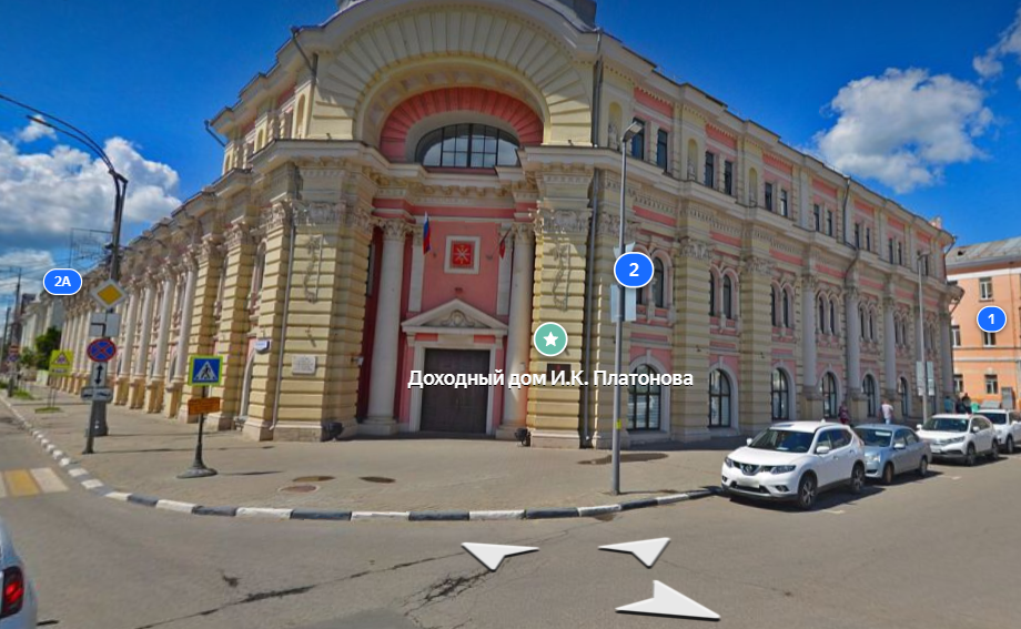 На первом этаже находился рыбный магазин тульского рыбопромышленника Игнатия Козьмича Платонова, который и построил это здание. Здесь можно было купить свежую и вкусную астраханскую рыбу, а также местную. Окна магазина представляли собой огромные аквариумы. В них плавала завлекающая покупателей рыба.