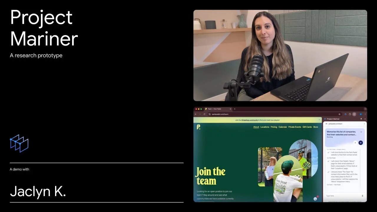 Agentic AI относится к ИИ-ботам, которые могут выполнять действия от имени пользователя. Google демонстрирует один из них — Project Astra. Это визуальная система, которая может распознавать объекты, помогает ориентироваться в пространстве и сообщает, где находятся забытые очки. Google также запускает Project Mariner — агента, управляемого через экспериментальное расширение для Chrome, которое в буквальном смысле может использовать браузер для пользователя и выполнять задачи вместо него. Пока среди его возможностей — печатать, прокручивать страницу и выбирать активную вкладку в браузере. И он запрашивает у пользователей подтверждение перед выполнением определённых конфиденциальных действий. Есть также агент Jules, предназначенный для помощи разработчикам в поиске и исправлении кода с подключением в рабочий процесс GitHub и новый агент, который следит за происходящим на экране и помогает играть в видеоигры.