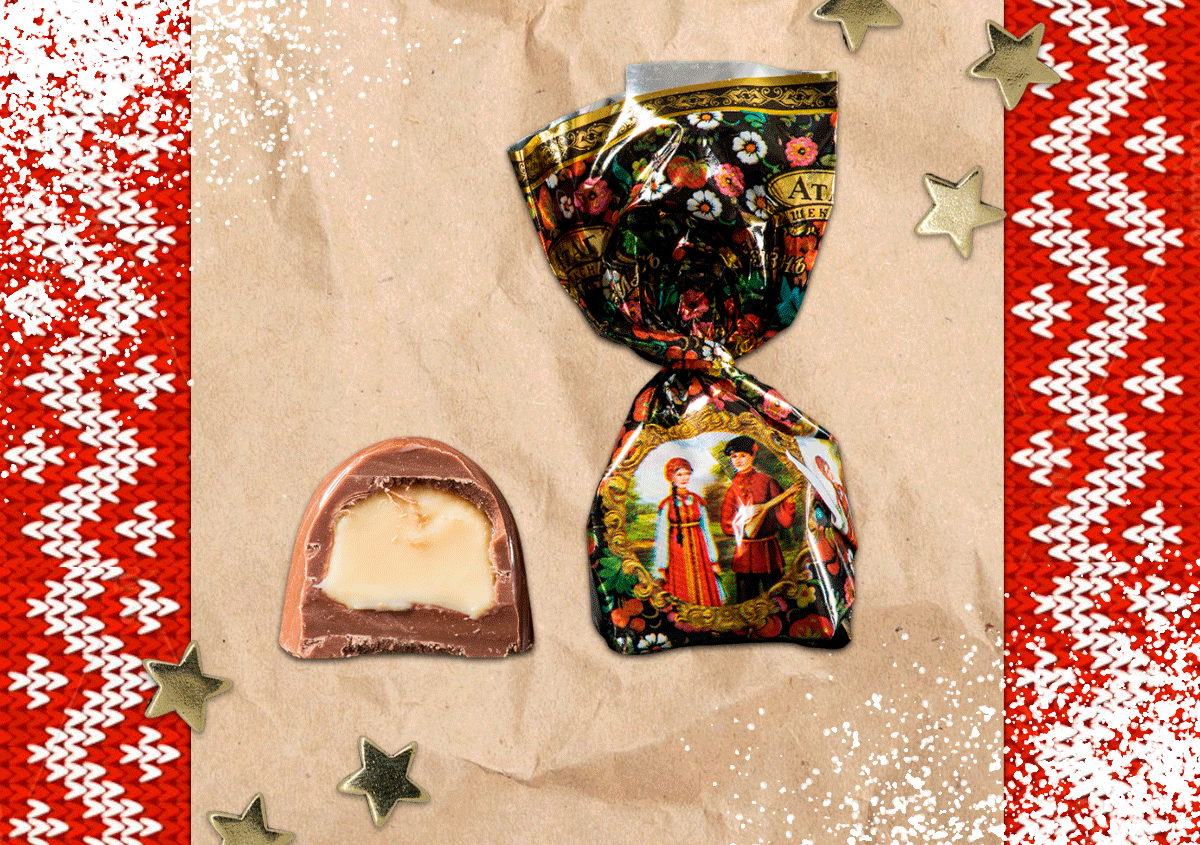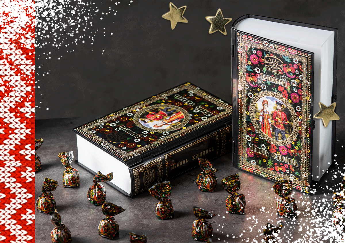 Можно подарить сладости в упаковке в виде елки, пряничного домика или новогоднего шара. А есть наборы, в названии которых уже есть посыл на любовь и счастье, например «От чистого сердца» от компании «Атаг». Упаковка сделана в виде часов, а внутри — расписанные под хохлому шоколадные яйца, покрытые молочной глазурью с ирисково-сливочным вкусом.