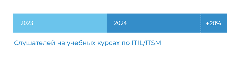 Курс “ITSM CDS. Создание, предоставление и поддержка ИТ-услуг” остается лидером среди курсов ITIL(ITSM). Рост спроса на эти курсы на 28% подтверждает их актуальность и востребованность на рынке.