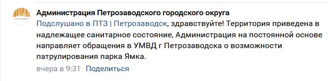 После жалобы в соцсетях мусор убрали. Тогда чиновники отметили, что мэрия города на постоянной основе направляет обращения в полицию о возможности патрулирования парка Ямка.