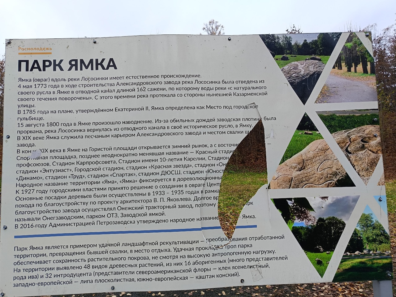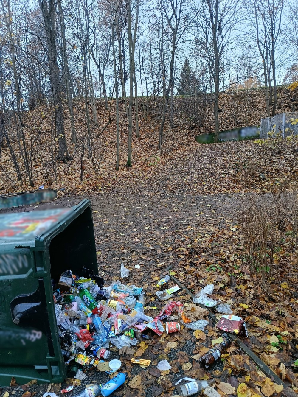Однако спустя пару дней в парк Ямка вновь наведались вандалы: они снова раскидали мусор, опрокинув контейнер, и разорвали информационное табло.