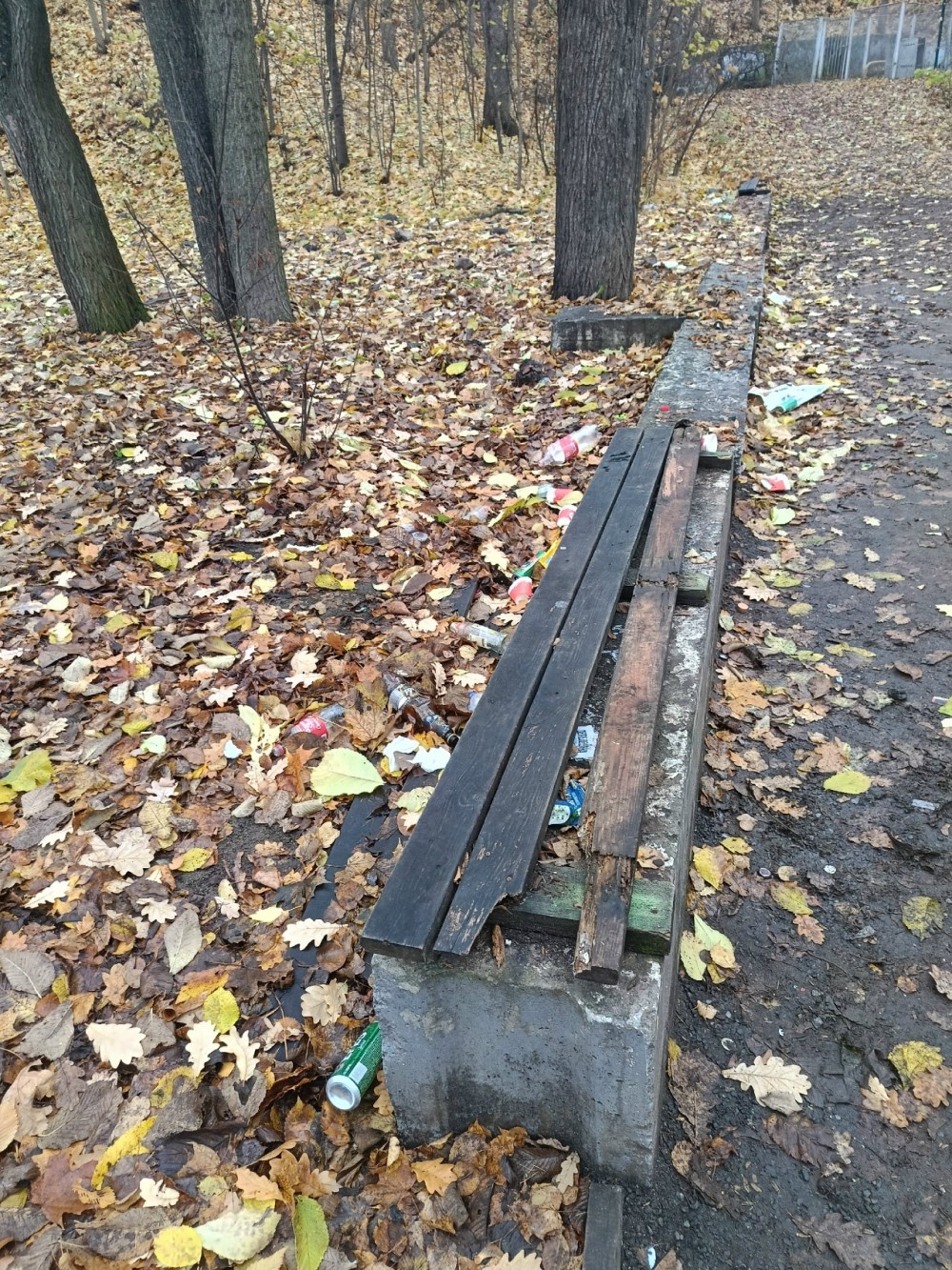 — Мамкиным вандалам спокойно не живется. Вот такая картина сегодня, плюс изуродован информационный стенд, рассказывающий об истории парка. Когда это прекратится? Наряды ППС, инспекторы ПДН, вы где? — пишет автор фото в том же паблике.
