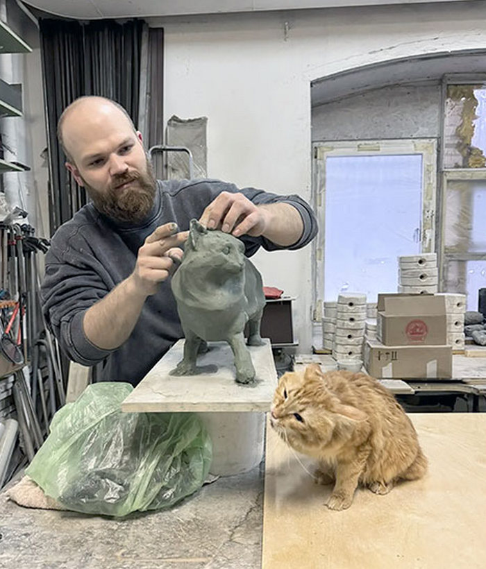 В Сортавале готовятся установить скульптуру карельского бобтейла. Скульптору Евгению позировал кот по кличке Фонарик.