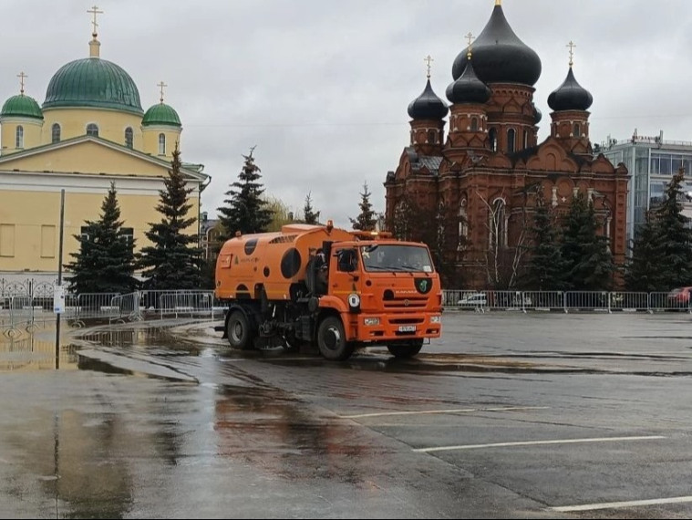 Накануне тротуар вручную подметали на улице Бондаренко, Советской, Красноармейском проспекте. А мусор собирали на  Орловской, Луначарского, Лейтейзена, Первомайской и других.