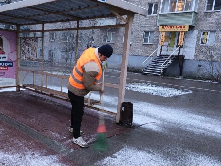 Несмотря на погоду, в городе продолжится сбор летучего мусора, уборка остановок и тротуаров.