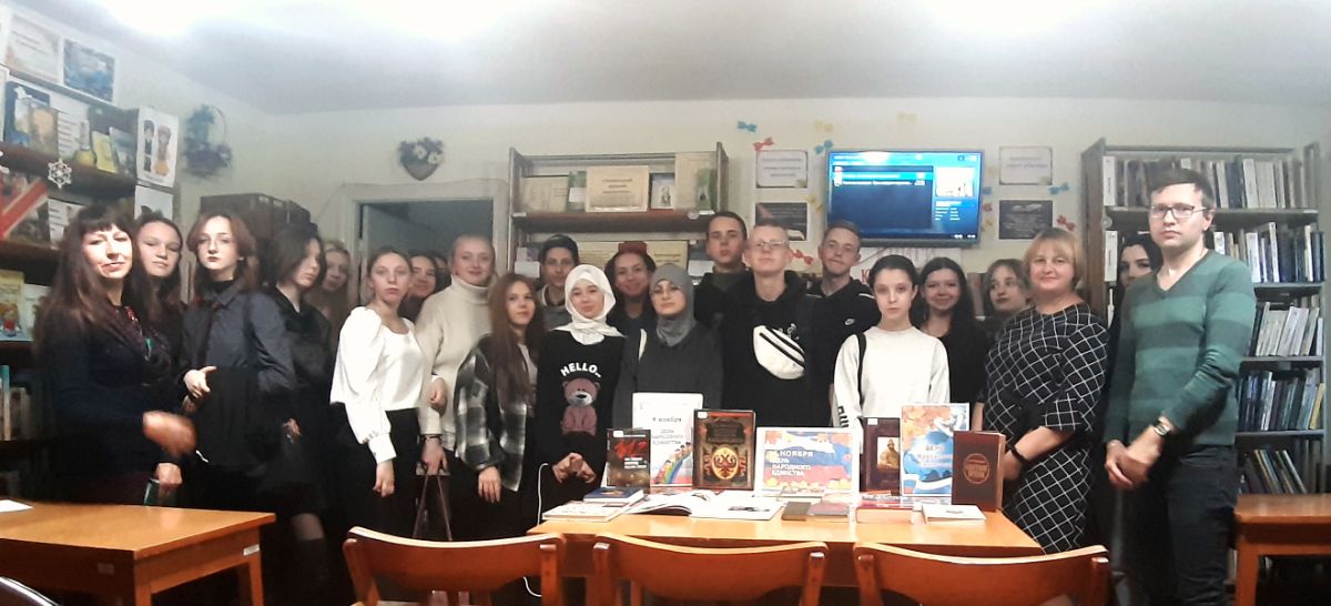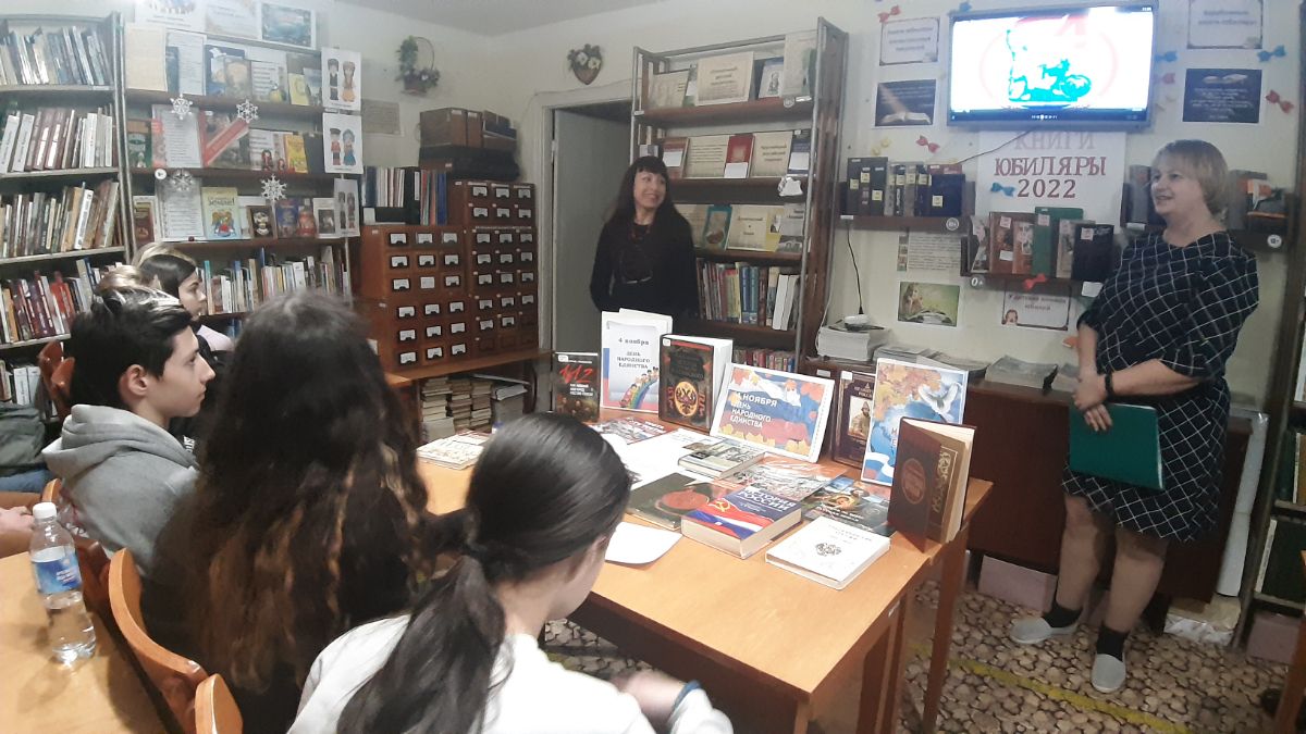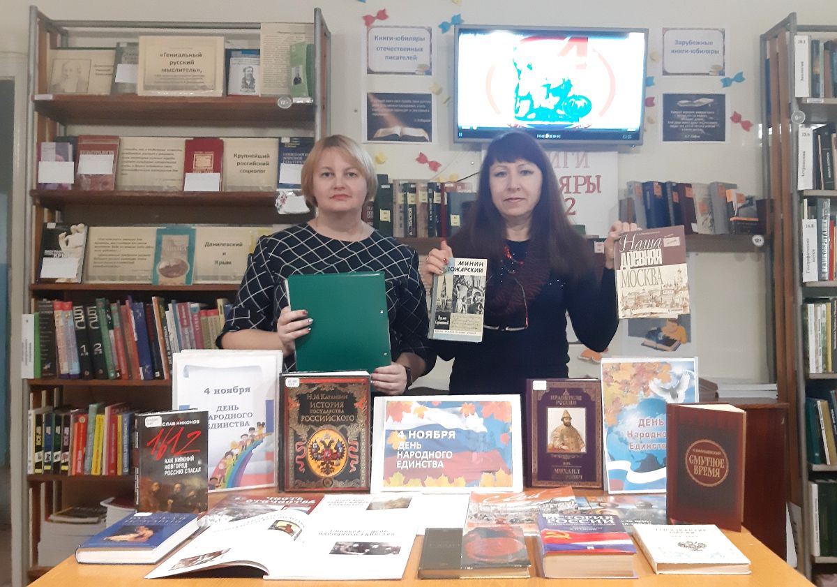 Для студентов «Симферопольского политехнического колледжа», участников объединения «Отечество», сотрудниками симферопольской библиотеки-филиала № 7 им. Т. Г. Шевченко была организована историческая хроника «Сердца единством скреплены». Из обзора представленных книг на выставке «Сила России – наш народ!», слушатели узнали о великих потрясениях страны в начале 17 века и исторических событиях сражений ополченцев за будущее России. Гости читали стихотворения И. Крымовой и Н. Майданик. В просмотренных видеофильмах, посвященных Дню народного единства и образу Казанской Богоматери была раскрыта тема нравственных ориентиров, ценностей подлинного патриотизма и религиозных традиций народов России. Россияне, принадлежащие к разным социальным группам, национальностям, вероисповеданиям – это единый народ с общей исторической судьбой и общим будущим.