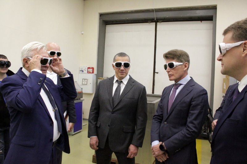 Вручив гостям для безопасности тёмные очки, сотрудники Центра продемонстрировали им работу лазерной установки.