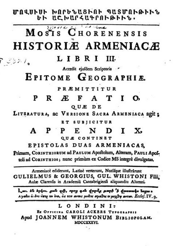 Мовсес Хоренаци, «История Армении», Лондон, 1736 г.