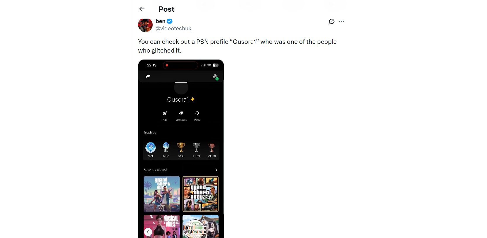 Некоторые учётные записи в PlayStation Network уже могут похвастаться «наличием» Grand Theft Auto VI среди недавно сыгранных игр. Как так получилось? Всё благодаря утекшему ID в базе данных и багу.
