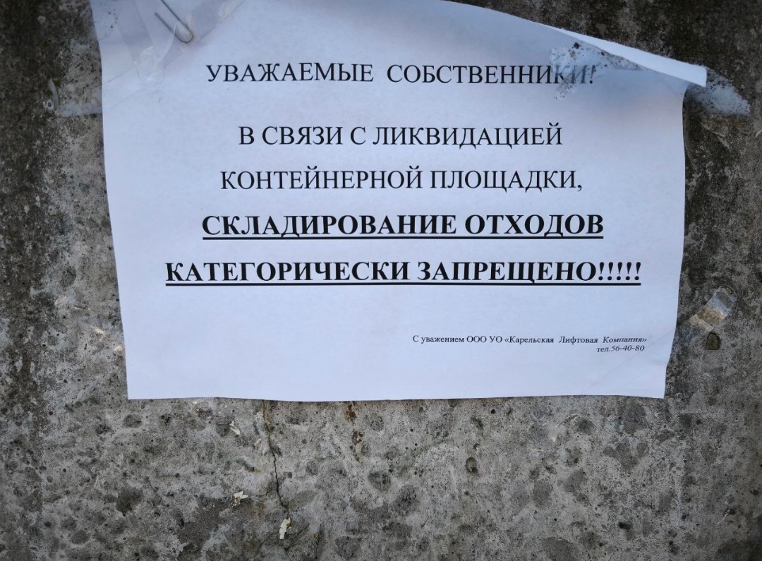В октябре 2024 года жители этого дома на общем собрании приняли решение о ликвидации площадки. Это было сделано после иска одного из жильцов подал иск о незаконном накоплении мусора. И вот,  в октябре 2025 года Петрозаводский городской суд вынес решение о ликвидации. Управляющая компания при этом не информировала о грядущей проблеме всех жильцов ближайших домов.