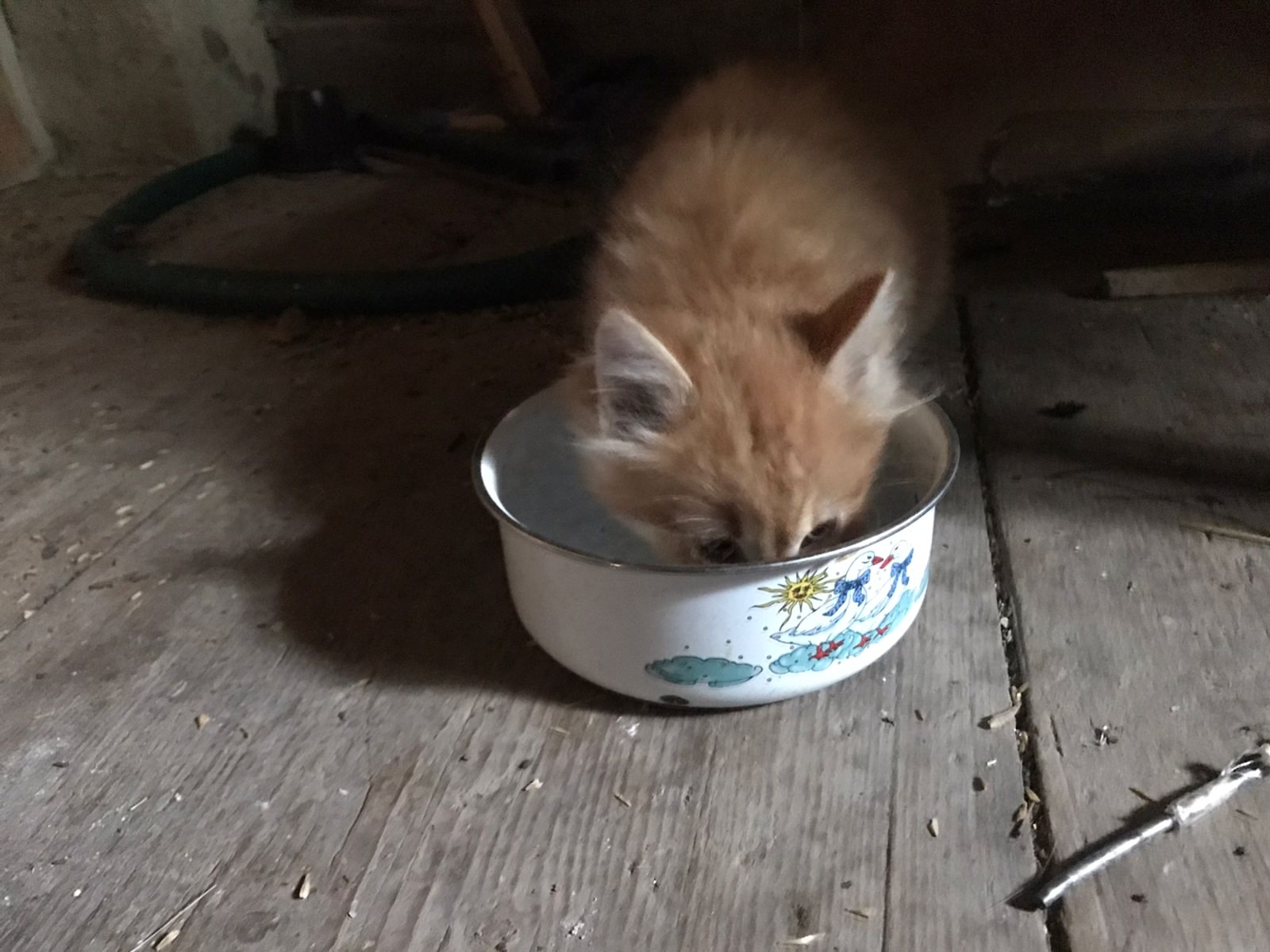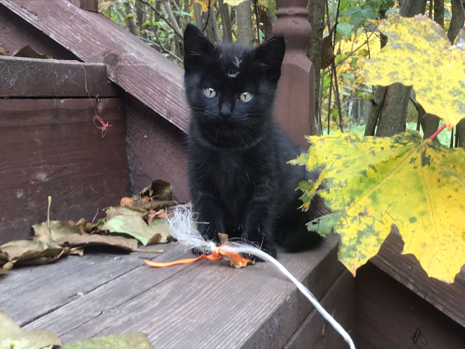 Недавно в кошачьей семье случилось пополнение. Теперь в усадьбе сразу пять котят - черный, с белыми лапками, серый, полосатый и рыжий.
