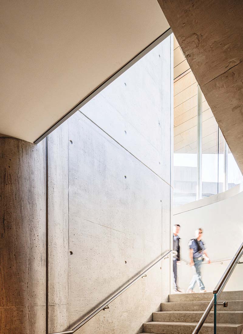 KPMB partner-in-charge Shirley Blumberg readily acknowledges that while her firm’s name comes first in the official credits, this is really a modest architectural project and a major landscape project. “Of course, one has to access the garage, and that’s where we came in,” she says. KPMB in fact does deserve praise for unobtrusively tucking the vehicular entrance to the underground garage into a bank just east of King’s College Circle, and for providing well-considered access points within the circle for people to exit and enter the garage. As Van Valkenburgh says, the precinct’s buildings range from “some real beauties to some modern clunkers.” The brutalist Medical Sciences Building lands squarely in the latter category. The main garage-access point—deftly placed in front of MedSci—is a graceful, de-materializing little pavilion with a green-roofed canopy and mullion-less glass walls that echo the sinuous lines of the Necklace’s gardens.