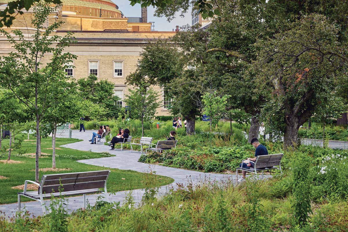 Although St. George Campus graduations involve a procession across King’s College Circle to Convocation Hall, Michael Van Valkenburgh’s first impression of the heritage precinct was that it lacked ceremony. “It didn’t feel very good as a landscape,” he says. “We put a lot of effort into establishing reciprocally beneficial transitions between the buildings and the landscape.”