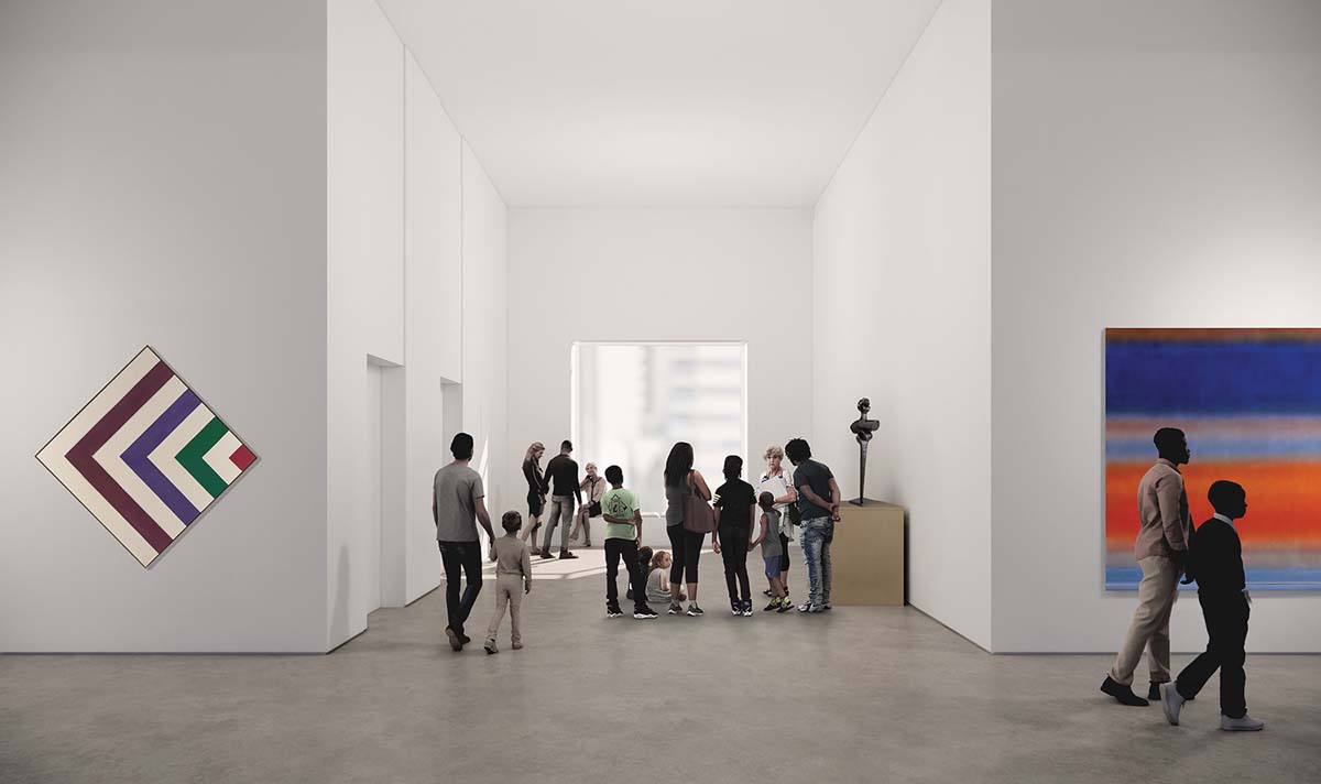 Inside, the Dani Reiss Modern and Contemporary Gallery includes 13 new exhibition spaces of varying scale and ceiling height, located across five floors. Designed as column-free galleries, they can function either as large open spaces or be divided into a series of more intimate galleries. These highly functional and very flexible spaces are dynamic enough to display the works of today’s great modern and contemporary artists, and adaptable to the needs of future generations of artists working across all media. A new south-facing terrace will offer views of the Toronto skyline, while serving as an outdoor sculpture gallery and event space, allowing for new kinds of artistic and community engagement at the museum.