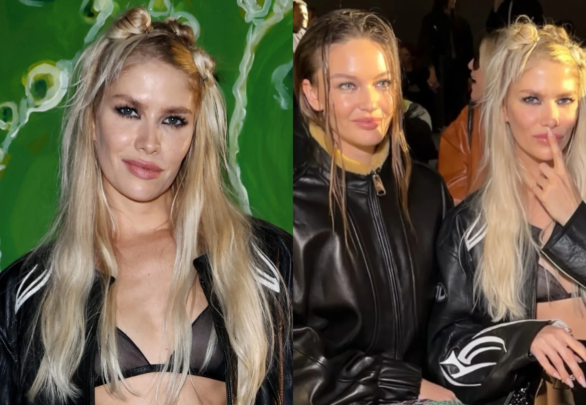 Елена Перминова в прозрачном бюстгальтере посетила показ GCDS